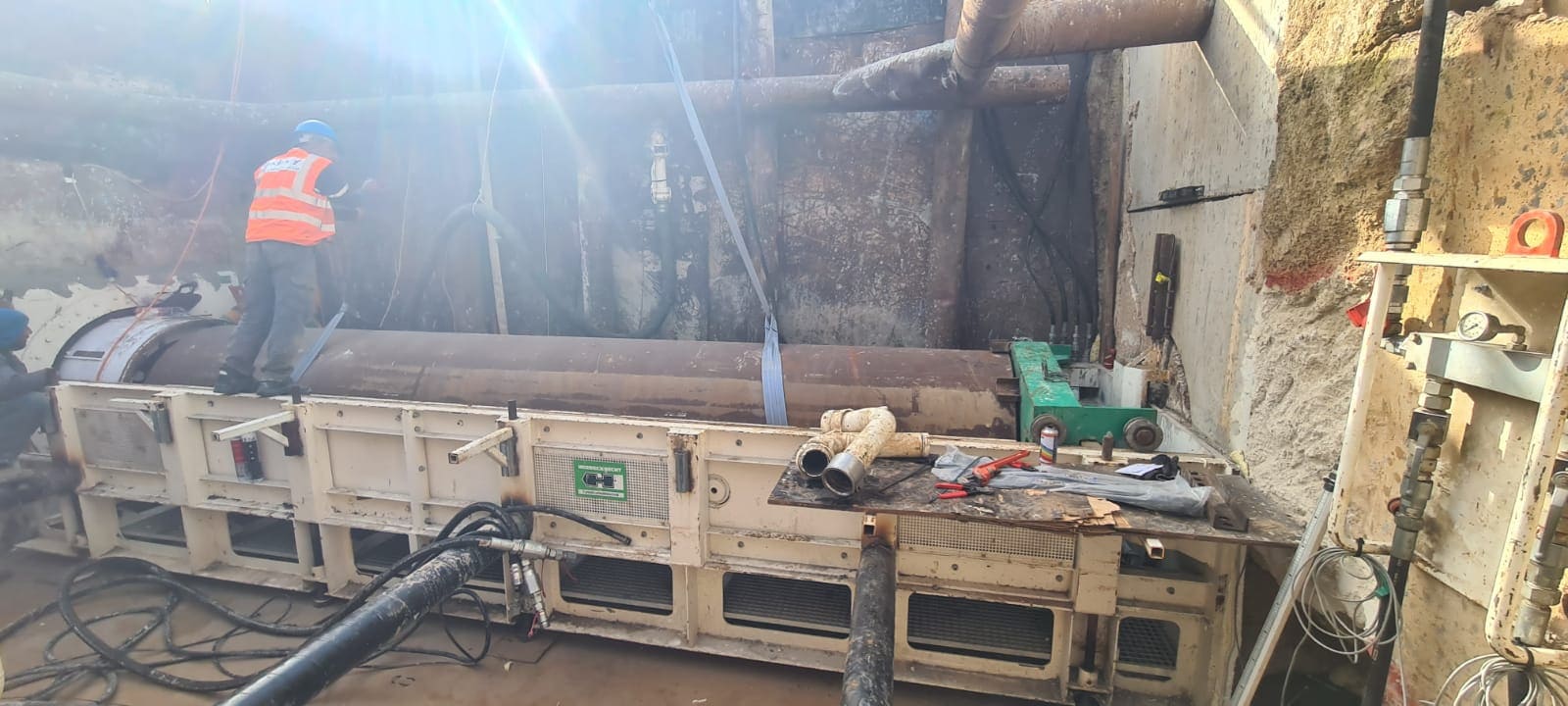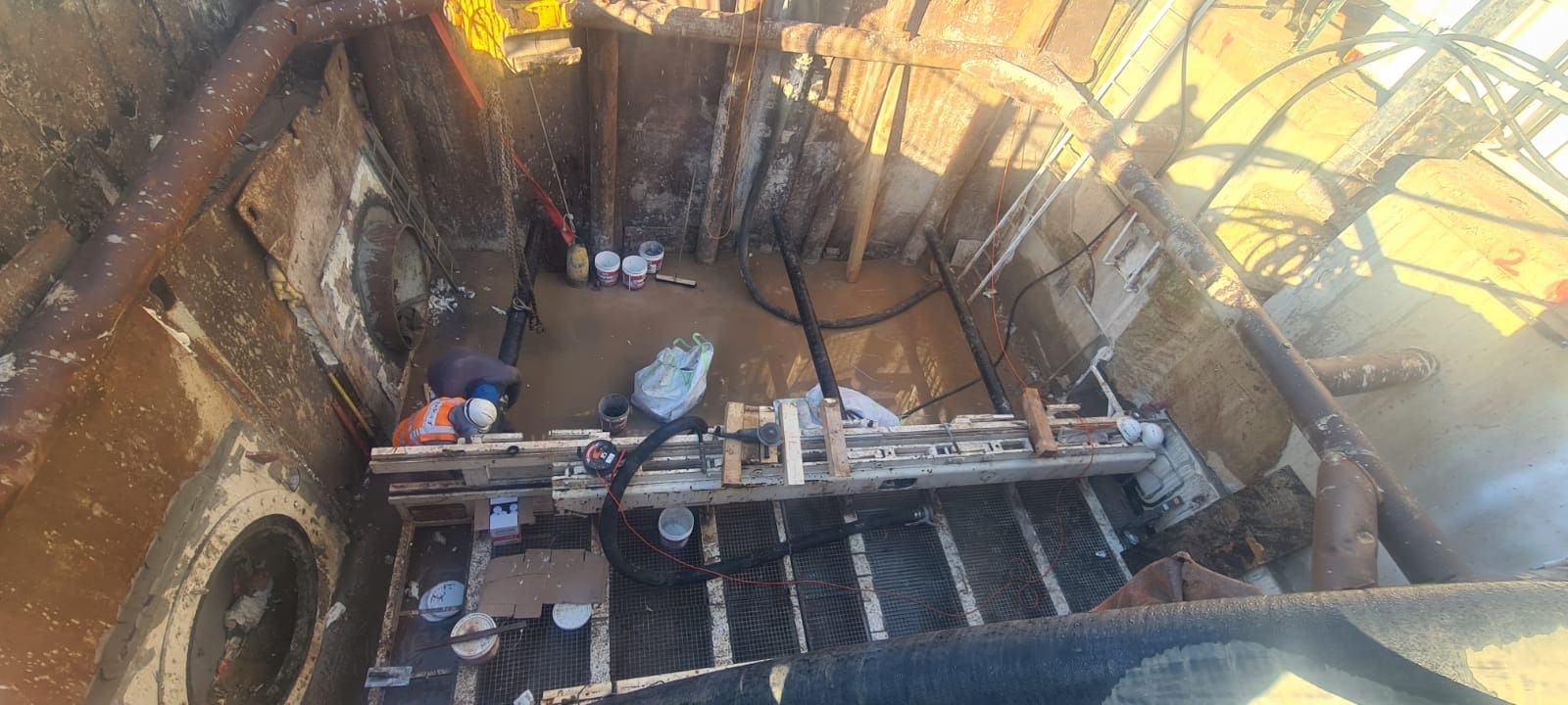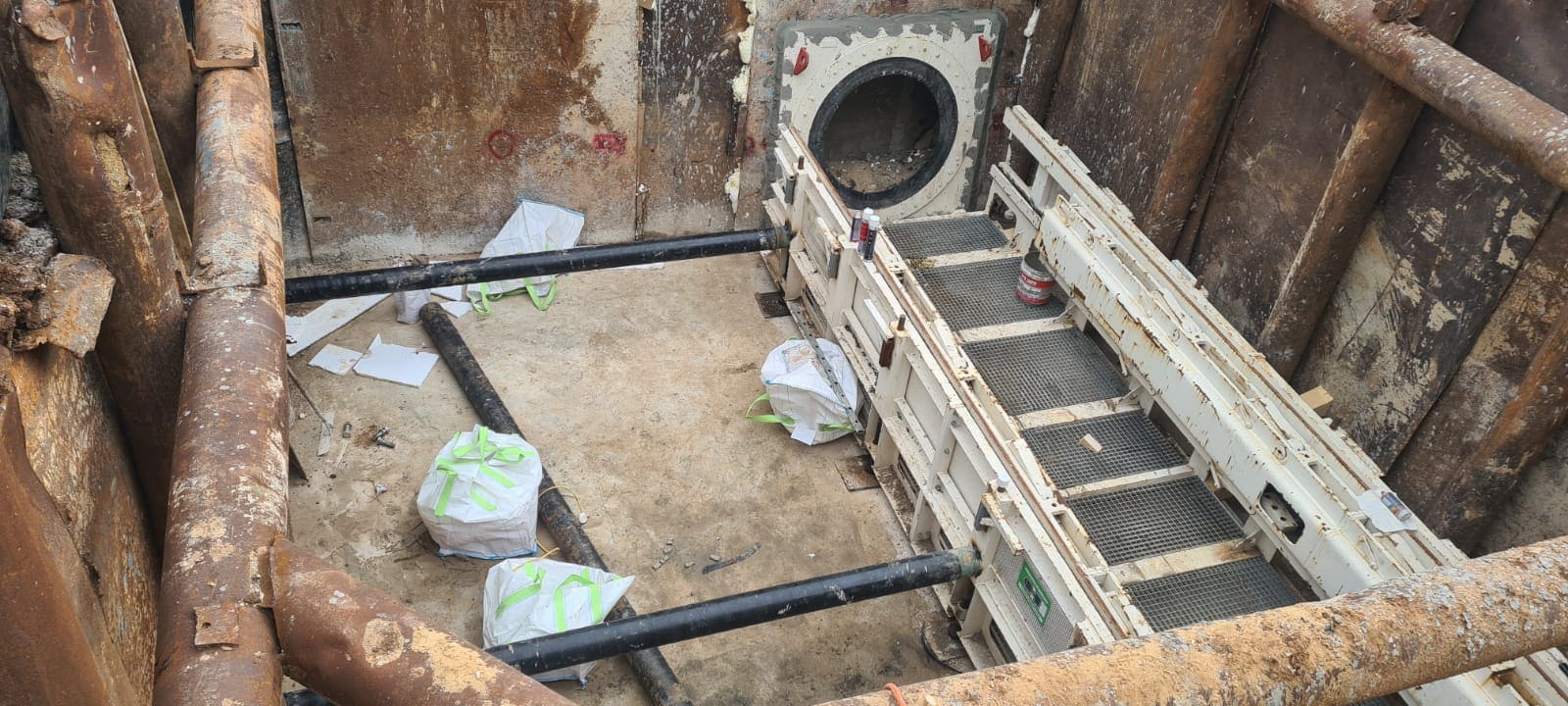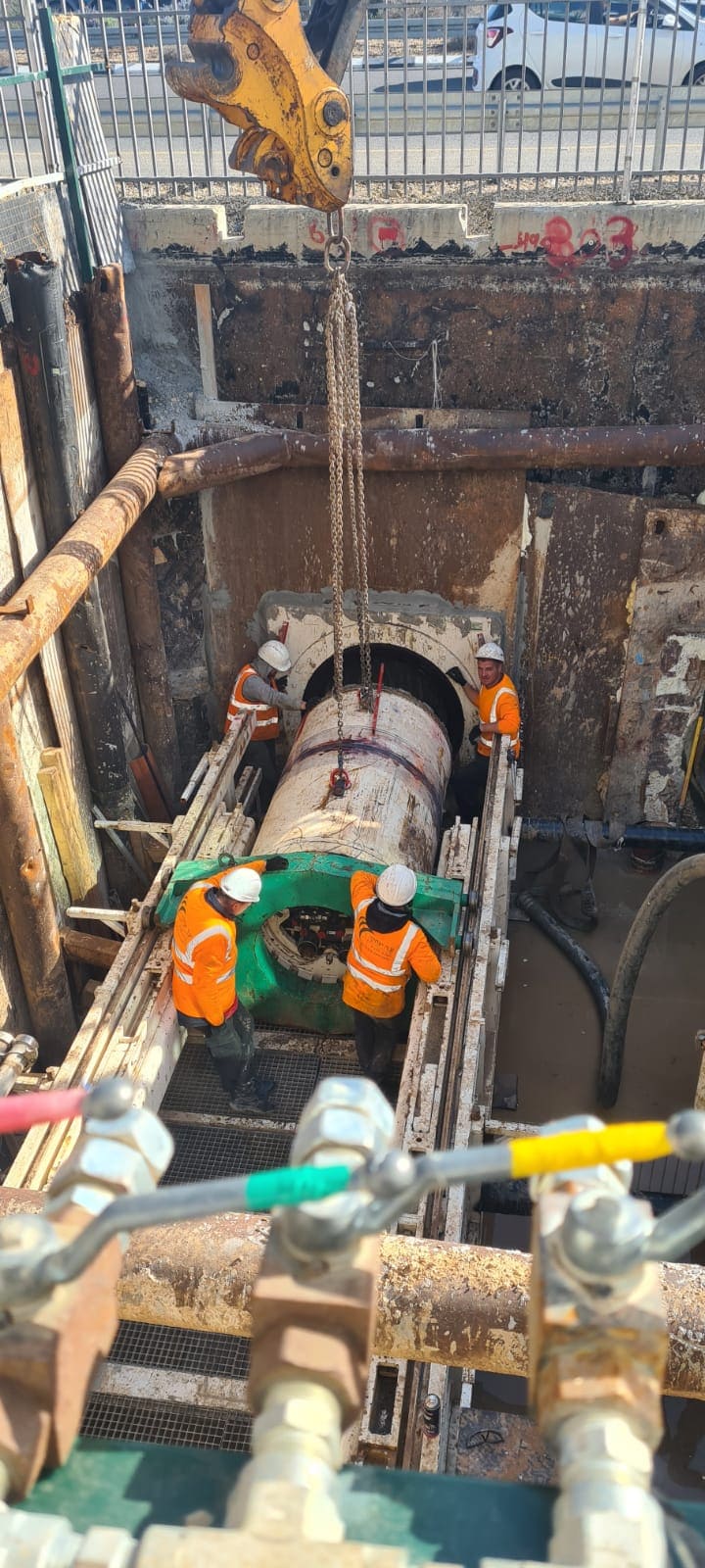 חציה כפולה של כביש 412 בדחיקה. הקמת פיר דחיקה מפלדה במידות של 8.5/ 5.0 מ' ובעומק של 5.0 מ'. מתוך הפיר בוצעה דחיקה של 2 צינורות פלדה בקוטר 48" מקבילים וצמודים זה לזה ובאורך של 60 מ'. צנרת הדחיקה משמשת לחיבור קו הניקוז הראשי של איזור התעשיה מכיוון רחוב אלכסנדרוני באור יהודה וחוצה את כביש 412 של נתיבי ישראל ומחברת את הקווים לתעלת ניקוז ראשית המקבילה לכביש 412.